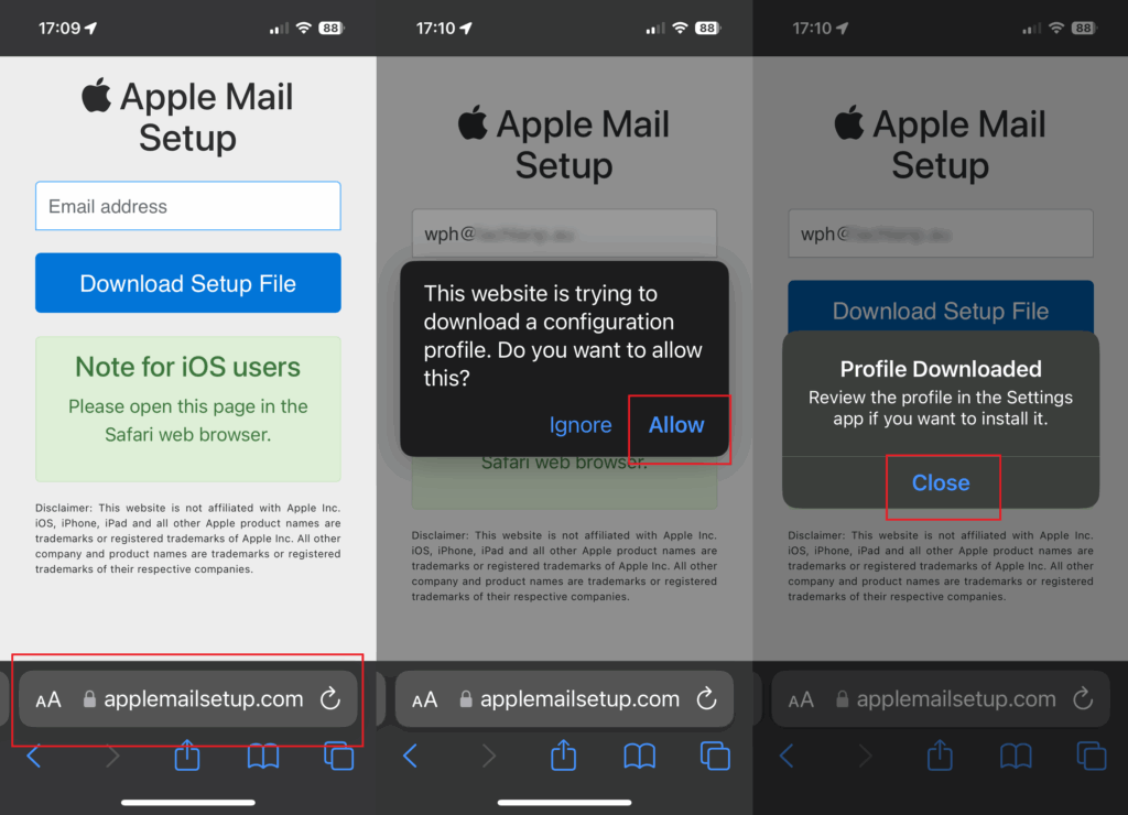 1. Visit to applemailsetup.com in the Safari browser on your iPhone/iPad.